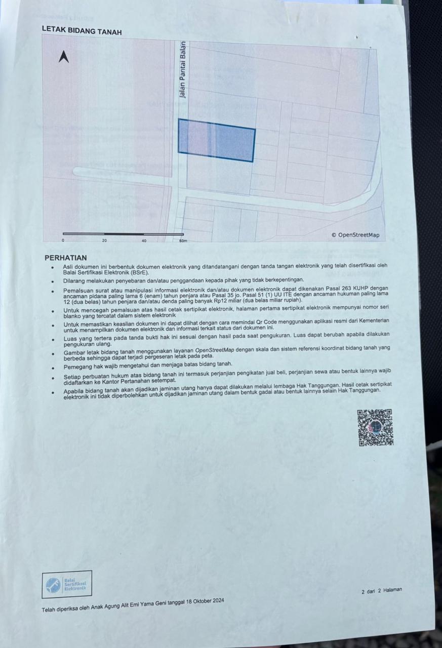 Sangat cocok untuk pembangunan villa, boutique hotel, cafΓ©, beach business, atau usaha pariwisata lainnya.